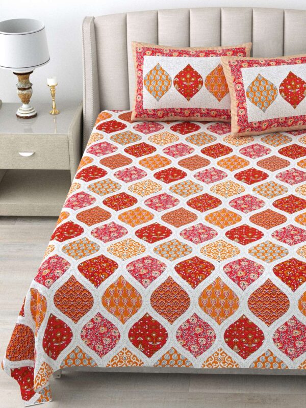 100% Pure Cotton Traditional Printed Bedsheet for Double Bed King Size Bedsheet with 2 Pillow Covers