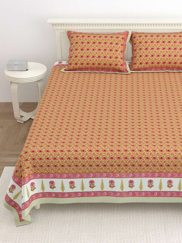 100% Pure Cotton Traditional Printed Bedsheet for Double Bed King Size Bedsheet with 2 Pillow Covers